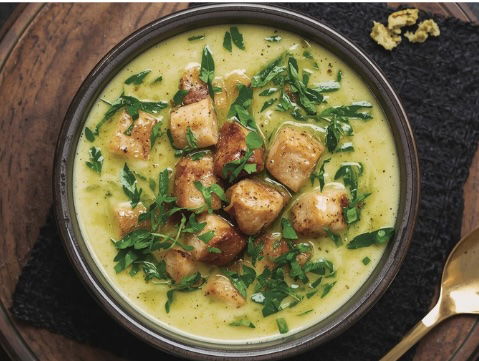 Bärlauchsuppe mit Bauernseufzer und Croutons